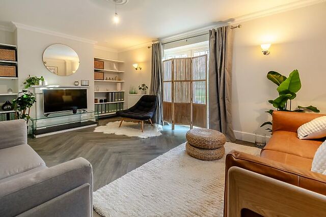 Upstairs, the master bedroom offers garden views, a super-king-size bed, and an en-suite shower room. Additional bedrooms include a double, a flexible zip-and-link double, and another single, ensuring restful nights for all.