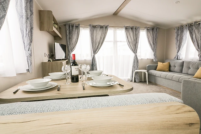 The open-plan living space, complete with a kitchen and sitting area, is ideal for sociable evenings in.