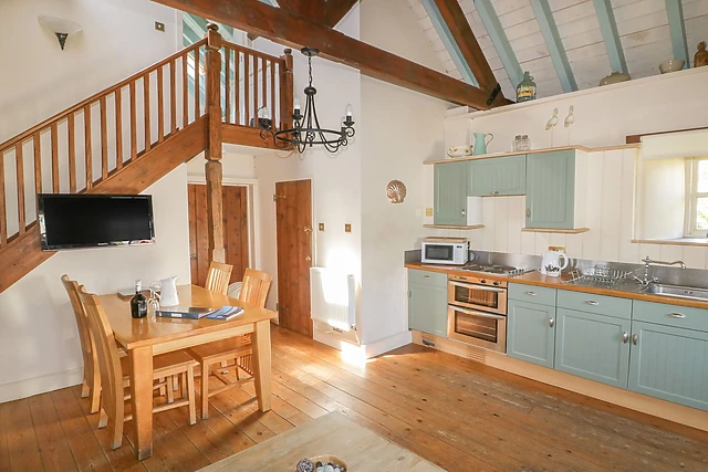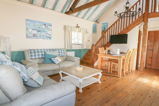 Be welcomed into the light and airy open-plan living space, where you will find a well-equipped kitchen for rustling up hearty meals, ready to enjoy at the dining table for four over a bottle of wine. After dinner, kick-back and relax on the plush sofas as you select a much-loved show on the TV with Freeview and DVD player.