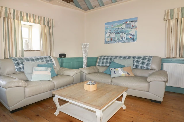 With high vaulted ceilings and exposed beams, Dovecote is a superbly converted barn nestled amongst a small hamlet of cottages next to Treveague Farm, just half a mile and a short walk from the beautiful small fishing village of Gorran Haven, near Mevagissey. Approaching the cottage down a long private drive you are greeted with far-reaching sea and countryside views.