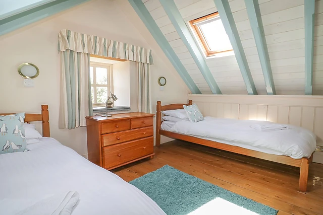 Continue through to the well-appointed shower room where you can freshen up after a day of exploring, before retiring to one of two bedrooms, a double, and a twin which can be found on the first floor. Your adventure to Cornwall begins at Dovecote.