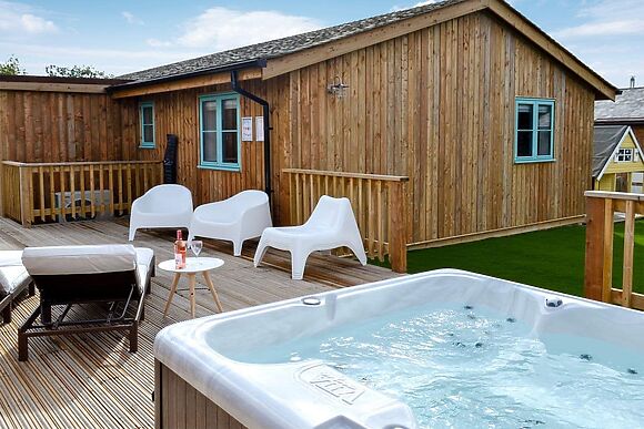 A private 5-person hot tub on the decked area perfect for evenings under the Cornwall sky after a day out exploring.