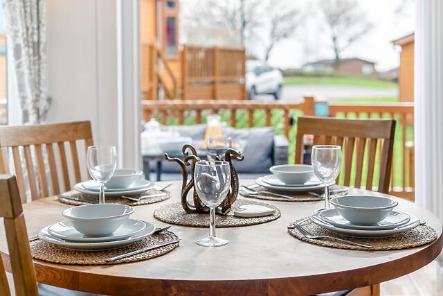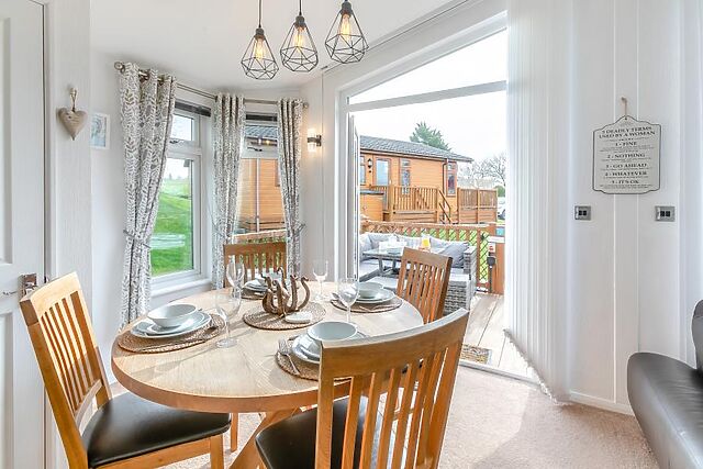 Step out through the patio doors onto the decking to enjoy your private outdoor space in warmer weather. A stylish dining set provides the perfect spot for outdoor dining, while your own hot tub adds a luxurious finishing touch.