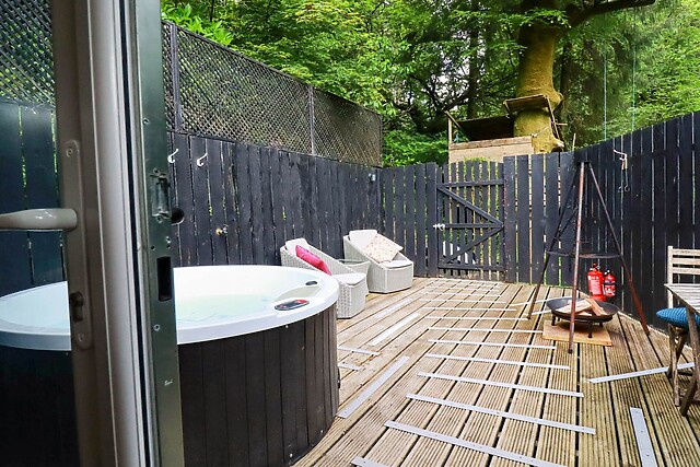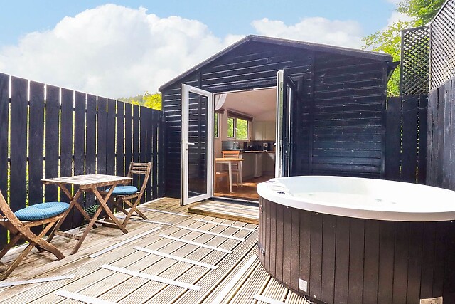 On warm summer evenings, step outside to the enclosed decking — a private world of its own. Soak beneath the stars in the bubbling hot tub, sip morning coffee as the forest stirs to life, or share a sunset barbecue with only the trees as your witness.