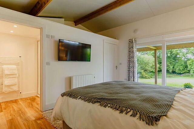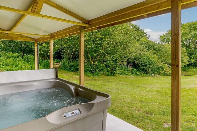 Yes, the accommodation boasts a private hot tub, providing the perfect setting for relaxation and enjoying the surrounding countryside views.