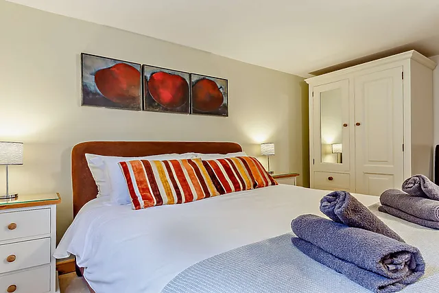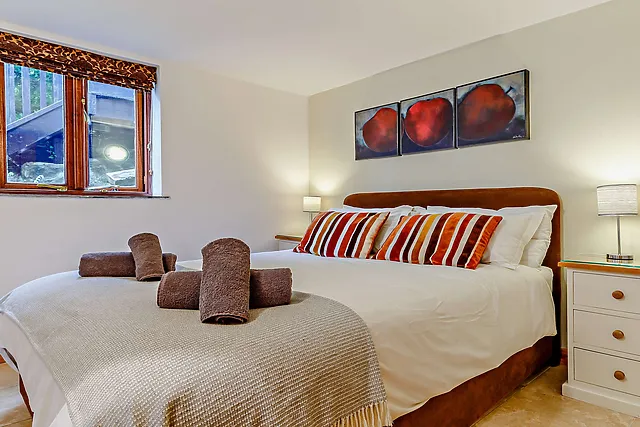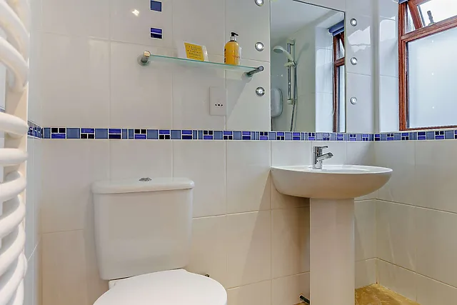 The accommodation comprises two well-appointed bedrooms, each with its own en-suite shower room, ensuring privacy and convenience.