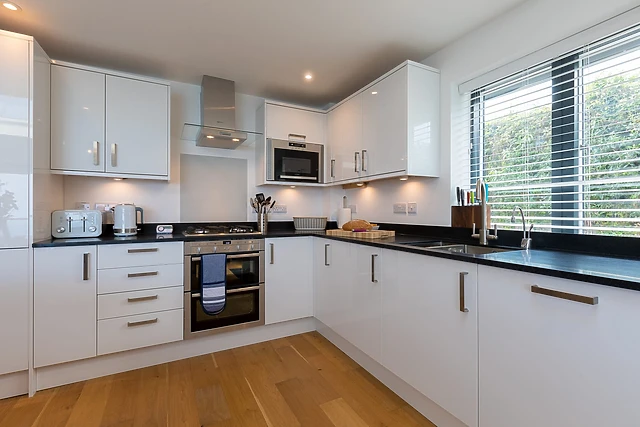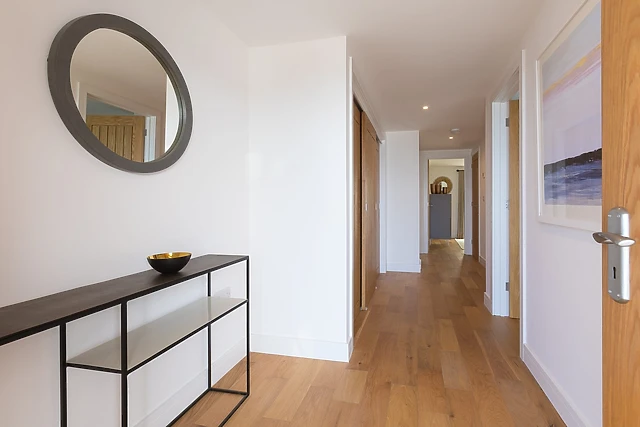 Each bedroom promises restful slumber, with the master king-sized room offering sea views and an en-suite for added privacy. The two additional bedrooms can be arranged as super-king-sized or twin beds upon request, ensuring comfort for all guests.