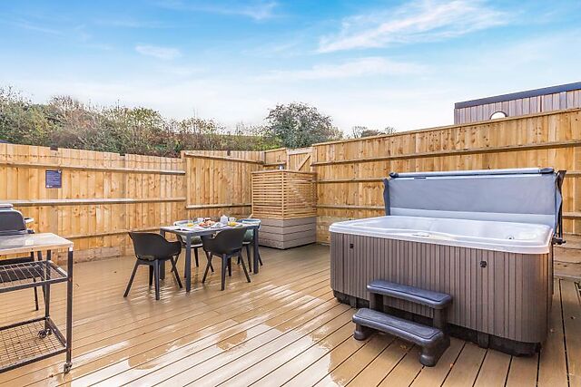 There’s a welcoming, homely feel throughout, making this a practical choice for families, friends and couples alike. Outside, a private fenced garden terrace extends your living space in all seasons, complete with outdoor heaters, comfortable seating, a BBQ and your own hot tub for a leisurely soak under the open sky.