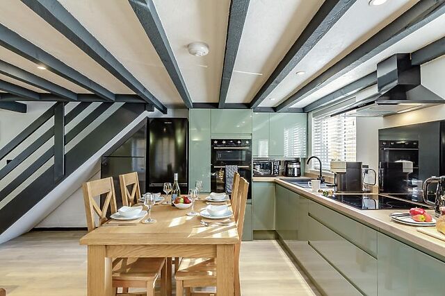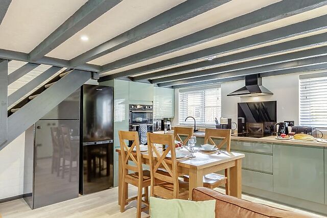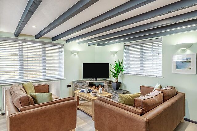 Settle on the comfortable sofas for a film night on the Smart TV or linger over unhurried meals in the dining area. The kitchen sits alongside, ideal for simple breakfasts before heading out or relaxed suppers back at base.
