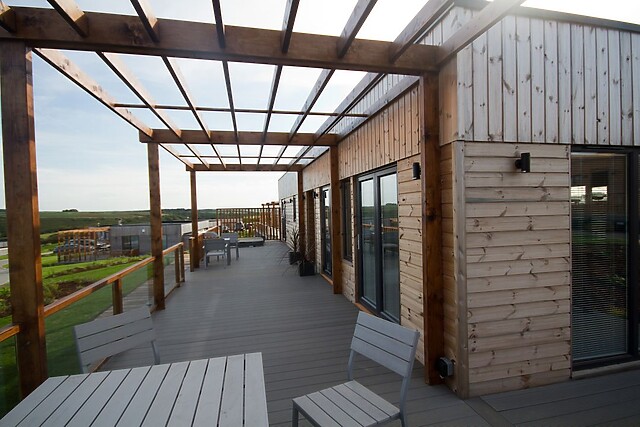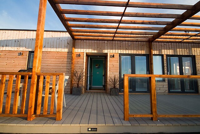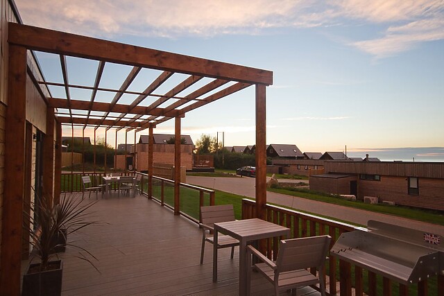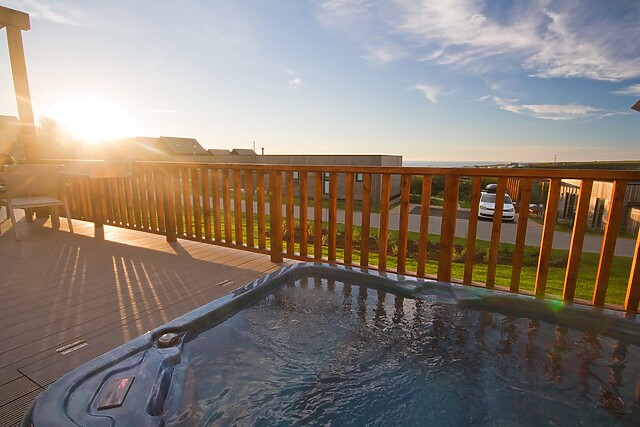 Park aside the lodge and step up onto the generous decked veranda, with private hot tub and garden furniture for alfresco dining, overlooking a distant sea view. Enjoy a dip with a glass of fizz as the sun sets.