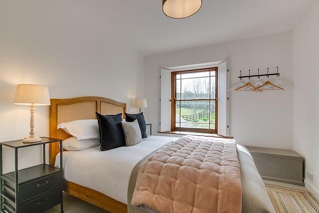 The farmhouse features two king-size bedrooms, one double, and one twin room.