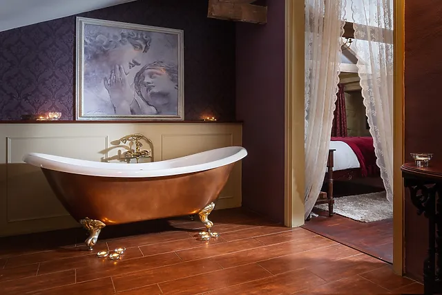 Step outside through French doors to a secret garden with a private hot tub and decked area, offering a serene spot for relaxation.