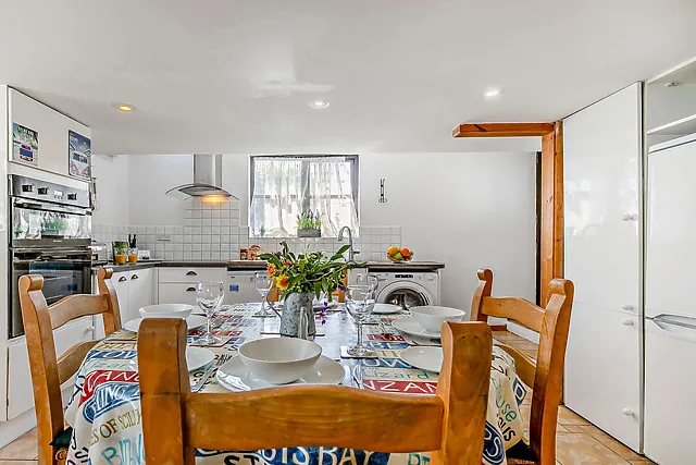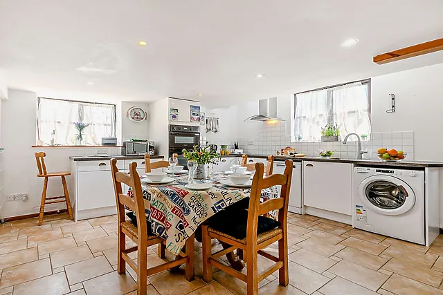 The cottage boasts a well-equipped kitchen/diner, creating a homely space for meal preparations.