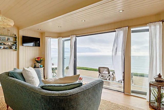 Imagine a luxurious cliff-top retreat where the vast expanse of the sea stretches out before you, offering a sense of infinity. This is the experience awaiting you at a stunning beach hut in Whitsand Bay, Cornwall.