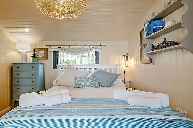 The accommodation comfortably sleeps two people, making it an ideal retreat for couples.