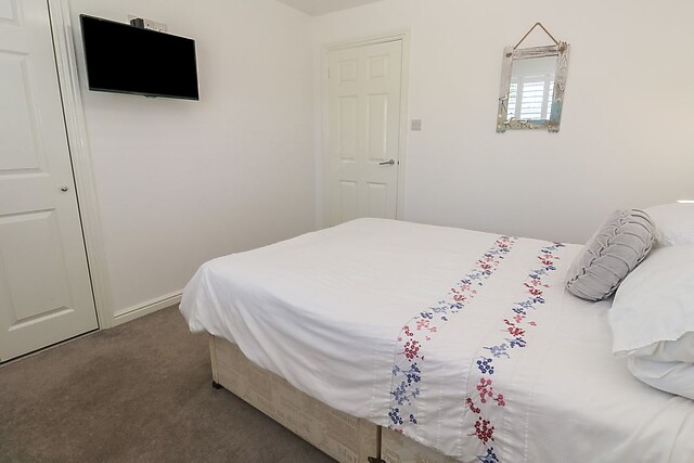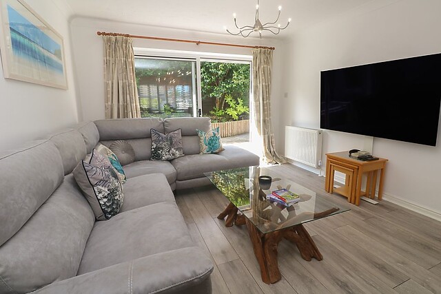 Upon entering this single-storey abode, you will be greeted by a spacious super-king-size bedroom, complete with a TV for your entertainment and an elegant en-suite featuring a walk-in shower, basin, and WC. Further along, you will find two additional double bedrooms, each boasting a TV for those lazy mornings in bed.