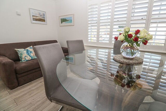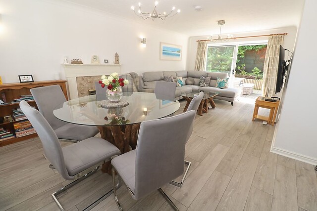 The dining area comfortably seats six, making it the perfect spot for enjoying home-cooked meals prepared in the well-equipped kitchen. Step outside to the non-enclosed front garden, where you can enjoy your morning coffee on the patio, or venture to the enclosed rear garden.