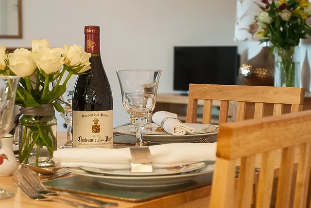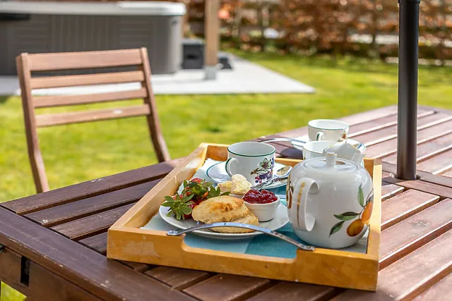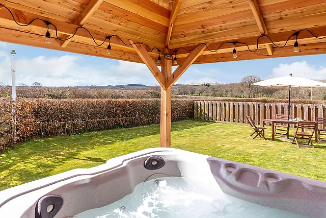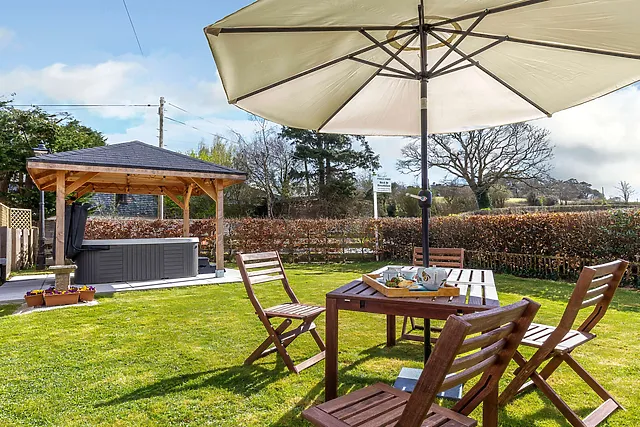 Indulge in the luxury of your own hot tub, where you can soak under the stars with a glass of bubbly. The enclosed garden with lawn and patio area, complete with garden furniture, is exclusively yours to enjoy.