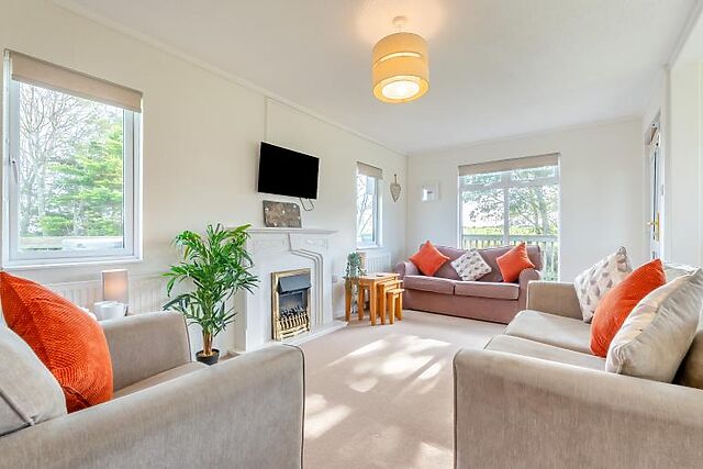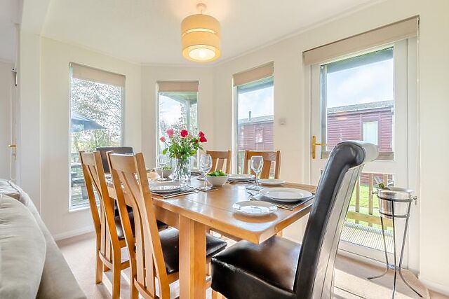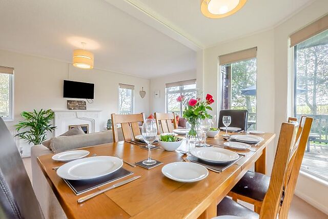 The lodge features two double bedrooms and a bunk bed room, ensuring a restful night's sleep for all. The private hot tub on the decked terrace provides a perfect spot for unwinding after a day of exploration.