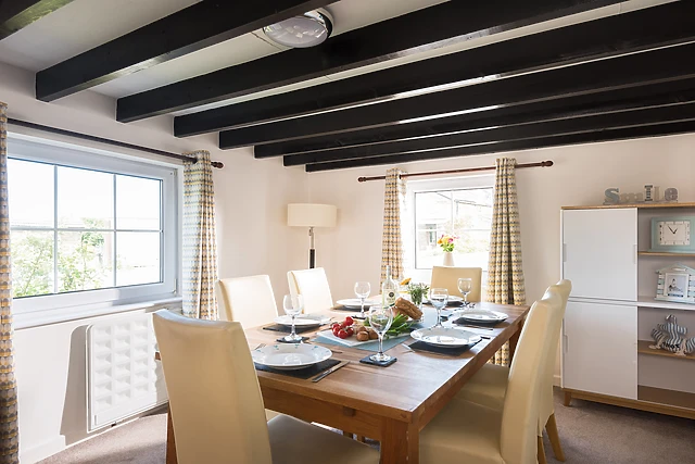 Choose to dine at the large dining table with plenty of seating for the whole family, or bring a board game from home and spread out for a friendly game. Once the evening draws to a close, retire to either the double or twin bedroom, each fitted with chest of drawers for storing your personal belongings and bedside tables and lamps, ideal for some late night reading.