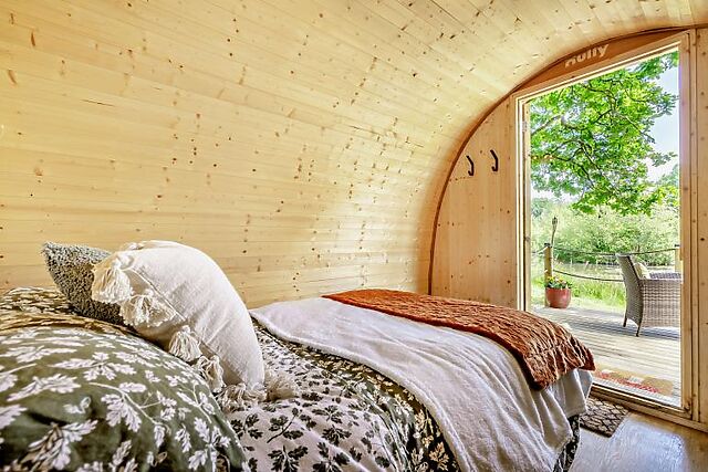 Welcome to Lakeside Retreat at Three Oaks, a cosy glamping pod in Treneglos, Cornwall. This delightful shepherd hut sleeps two people and offers a unique glamping experience by a serene lake.