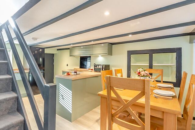 The kitchen area is well laid out for sociable cooking and dining, with plenty of space to prepare family favourites. Three restful bedrooms complete the sleeping arrangements: one double bedroom, and two twins ideal for children or friends.
