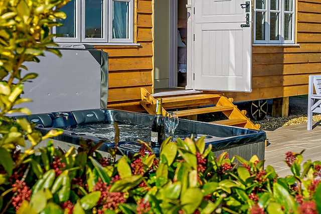Yes, guests can enjoy a private hot tub, offering picturesque views of the surrounding moorland and an idyllic setting for relaxation under the starry night sky.