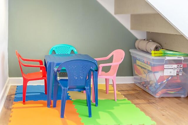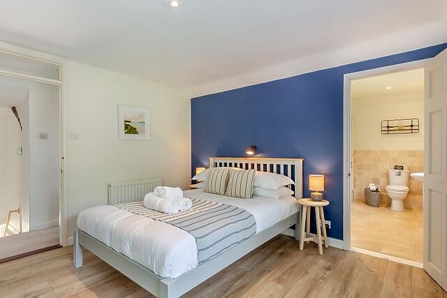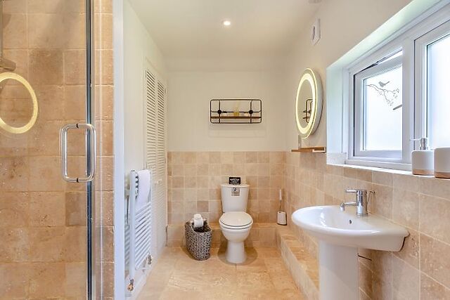 Upstairs, the cottage features three inviting bedrooms with comfy Emma mattresses: one king-size room with an en-suite shower, one double room, and one zip-and-link room. The family bathroom is also located on this floor, ensuring ample space and comfort for all guests.