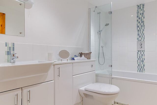 A reverse-level layout means that you enter this property on the ground floor and straight into the bedroom area. The property has one bedroom, which has a king-size zip-and-link bed with memory foam mattress, (which can be made up as a twin on request), en-suite bathroom with shower over bath and WC.