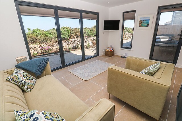 Bi-fold doors open wide to let the fresh coastal breeze in, creating a seamless connection between indoors and out, and framing the breathtaking views beyond. Wake up to the sound of the waves and the sight of the sea from the elegant king-size bedroom, which offers zip/link flexibility and a second Smart TV for those slow, indulgent mornings.