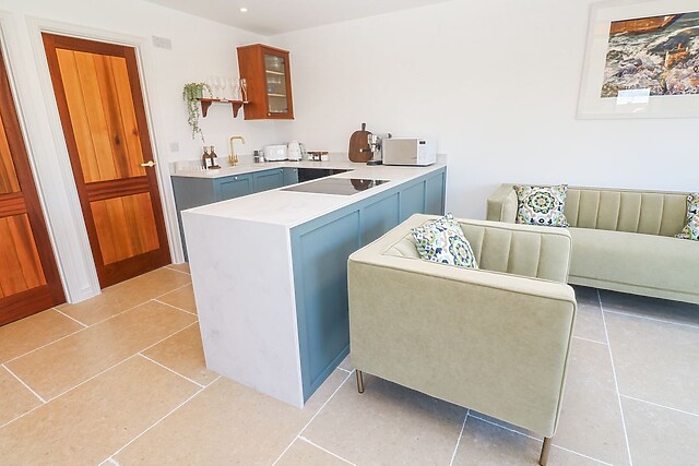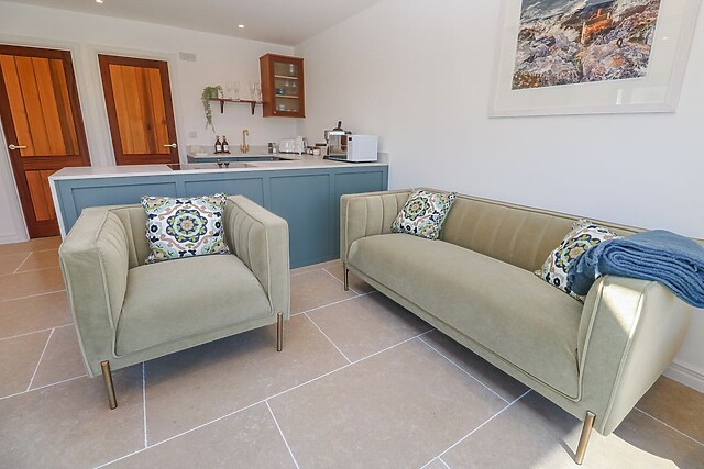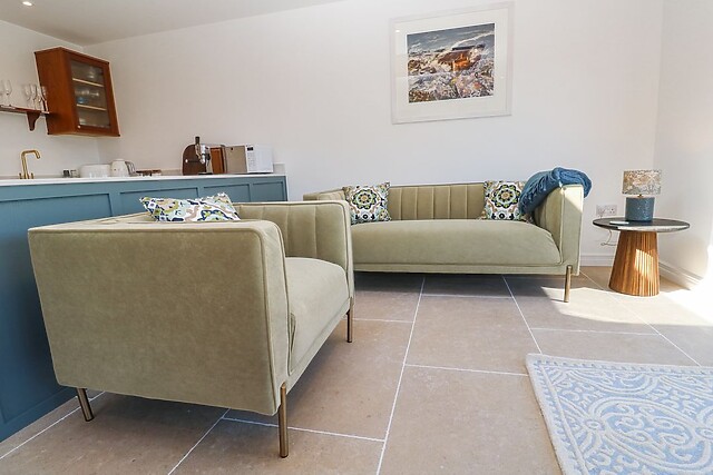 Step inside this beautifully designed, single-storey sanctuary and be welcomed by a light-filled open-plan living space. The heart of the home features a fully-equipped kitchen, a dining area for two, and a stylish sitting room with plush seating and a Smart TV, ideal for unwinding after a day by the sea.
