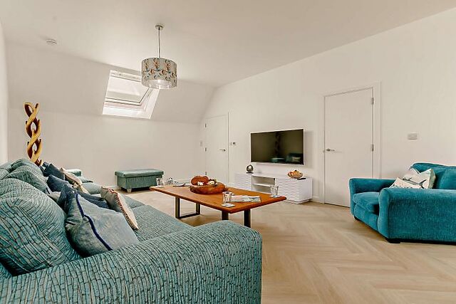 Cosy up on the sofas in front of the TV after a lovely meal together at the dining table or have a games night. The third bedroom is on the second floor.