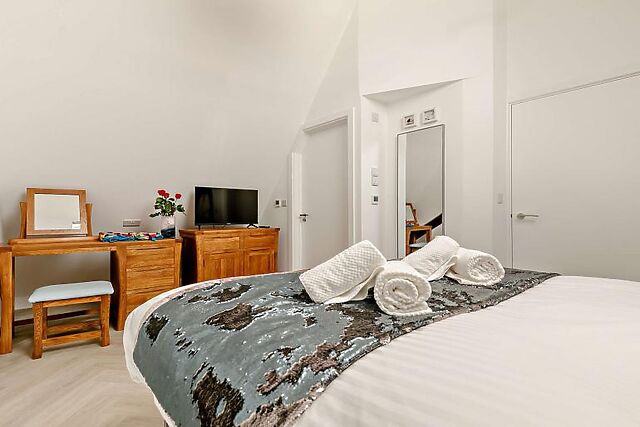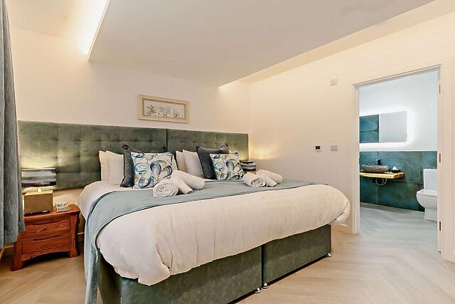 Two of the bedrooms are on the ground floor: two super-kings (or twins), both have Smart TVs and en-suites. The open-plan lounge/kitchen/diner is upstairs with heaps of space for everyone.