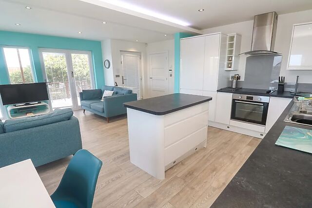 All on one level, the lodge opens into a generous open-plan living space, where you can settle into the comfortable seating by the Smart TV, with the warmth of a woodburning stove on cooler evenings. The kitchen is well-appointed with all the essentials for rustling up home-cooked meals, which can be gathered around the dining table with ease.