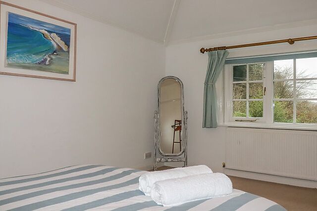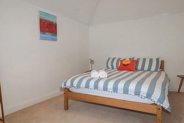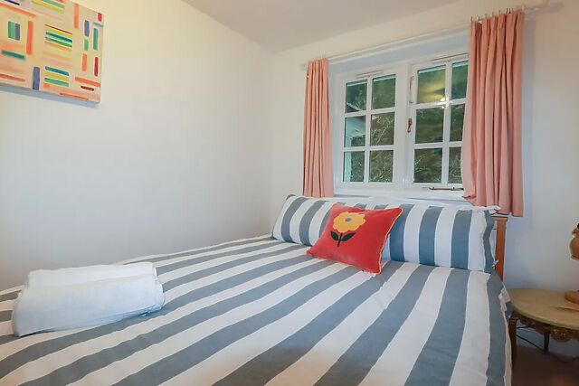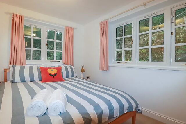 The woodburning stove begins to crackle softly as you settle into the sitting area, offering the perfect place to unwind after a day exploring Cornwall. The kitchen provides everything you need for an easy self-catered stay.