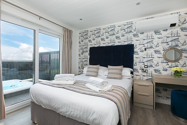 The sleeping accommodation consists of three well-appointed bedrooms. The king-size bedroom offers generous storage, a Smart TV for those lazy mornings in bed, and patio doors that open to the veranda, ideal for a morning dip in the hot tub.