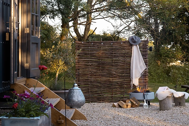 When it's time to rest, the shepherd's hut awaits with its double bed, ensuring you can drift off into a refreshing night's embrace. Wake up in the morning by listening to your favourite tunes on the Smart speaker and hop into the steamy shower.
