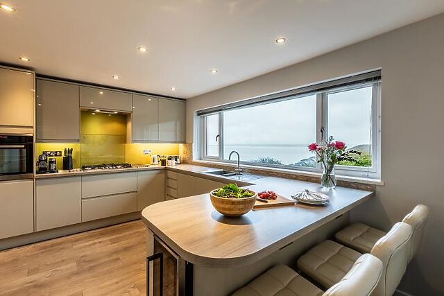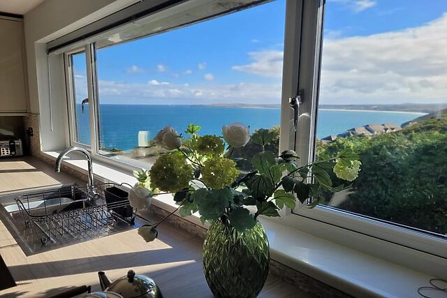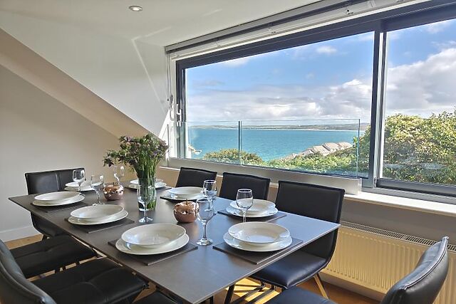 The reverse-level design maximises the breathtaking views of Carbis Bay from almost every window.