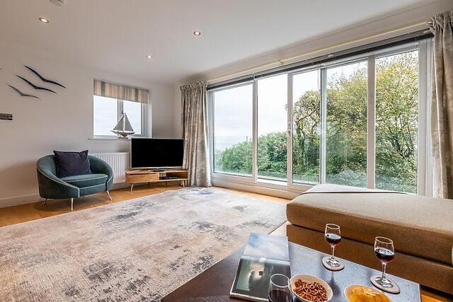 Relax in the beautifully designed patio garden, complete with a hot tub for ultimate relaxation. The large balcony is perfect for alfresco dining, allowing you to soak up the coastal atmosphere.