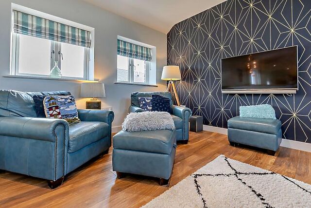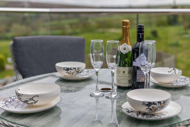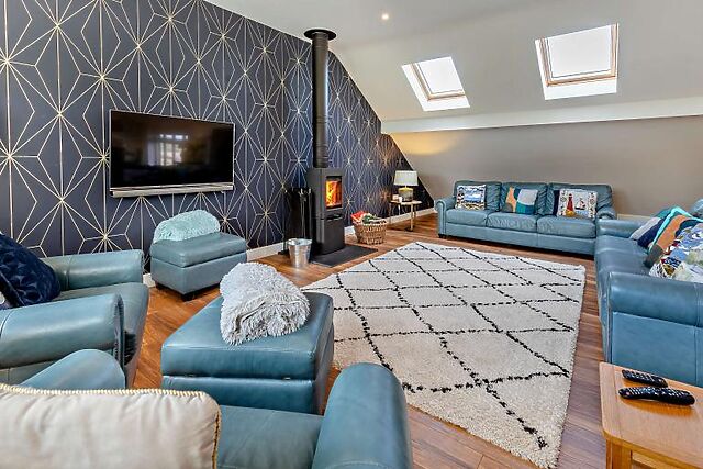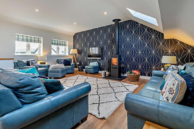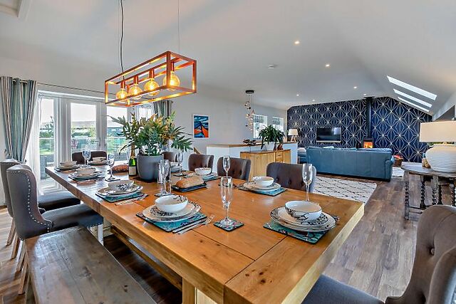 Relax in the inviting hot tub or soak up the sunshine on one of the three balconies, each providing breathtaking countryside views. The open-plan lounge/kitchen/diner is perfect for family gatherings, with a cosy wood burner and a well-equipped kitchen that includes an elevated breakfast bar.