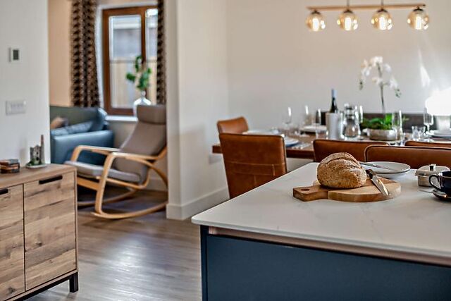 Elsewhere, the kitchen/diner is where foodies can create and consume guilt-free favourites to their heart’s content, working up an appetite in the nearby games room. The first floor is home to a family shower room and four stylish bedrooms: two double bedrooms, one with an en-suite; and two twin bedrooms, one of which can be converted into a super-king-size bedroom upon request.