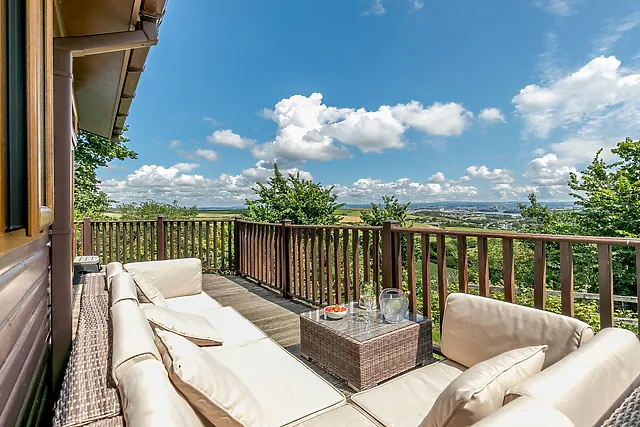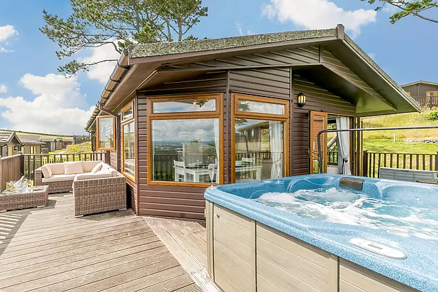 Yes, the property boasts a private hot tub on the decked area, offering guests a luxurious spot to relax and enjoy the stunning panoramic views.