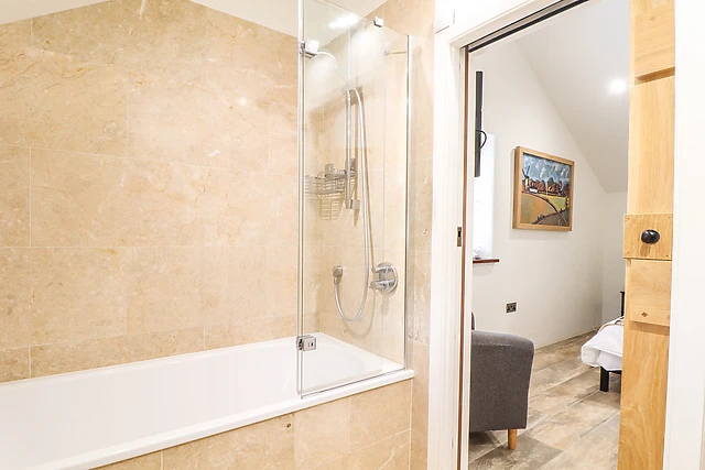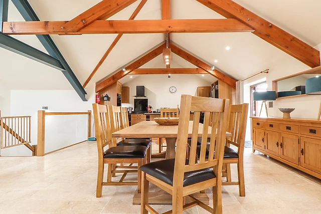 The ground-floor bedrooms provide direct access to the private garden, where you can unwind in the hot tub and bask in the lush countryside vistas.