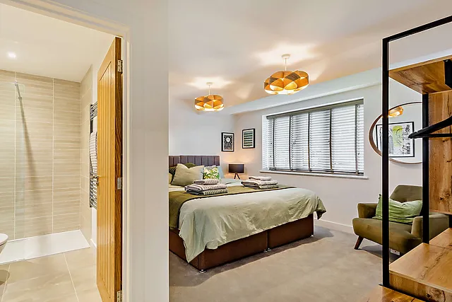 At the entrance level, the first floor has five bedrooms, all with super king-size beds and plenty of storage. Two bedrooms are ensuite.