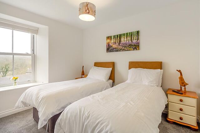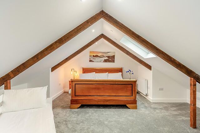 Finishing off the ground floor is a light double bedroom with an en-suite shower room with WC. Upstairs, on the first floor, is the king-size zip-and-link bedroom with a lovely en-suite shower room, and two king-size bedrooms.