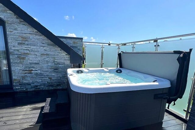 Outside, you can relax on one of the two balcony areas or enjoy the large enclosed lawn. The hot tub on the decking area is ideal for unwinding after a day of exploring the Cornish coast.
