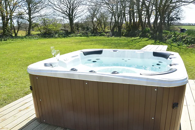 Yes, the property boasts a private hot tub in the garden, providing a perfect spot for relaxation and enjoying the countryside views.
