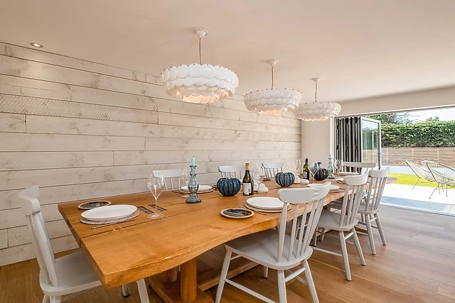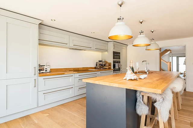 The sleek kitchen is a culinary dream, while the separate snug brims with books and games for entertainment.