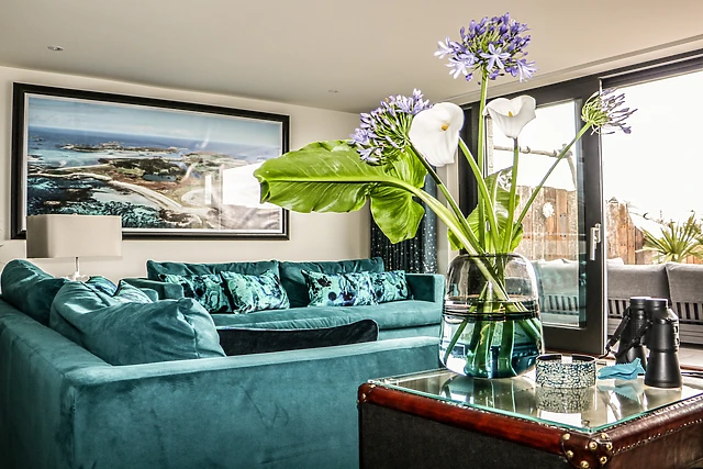 The master bedroom boasts a super-king-size bed, a private balcony with awe-inspiring views, and an en-suite wet room.