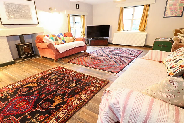 The spacious sitting room with cosy sofas and a large TV and DVD player. Spend your evening keeping up to date with all your favourite shows and enjoying quality family time.